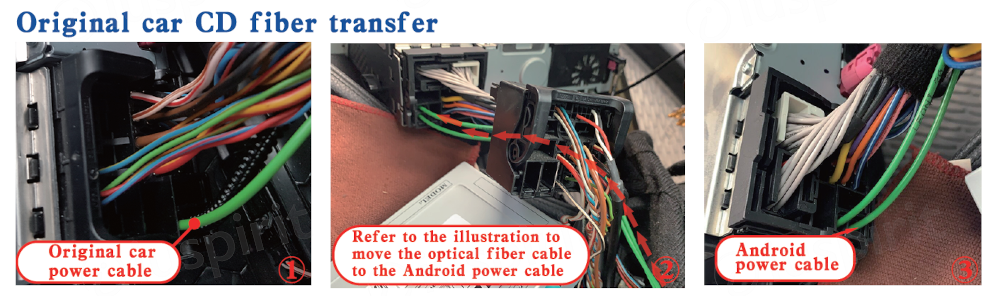 Se la vettura ha la fibra ottica, i due cavi della fibra ottica si devono spostare dal connettore della vettura al connettore del nostro prodotto. Senza tale operazione non c’è audio.